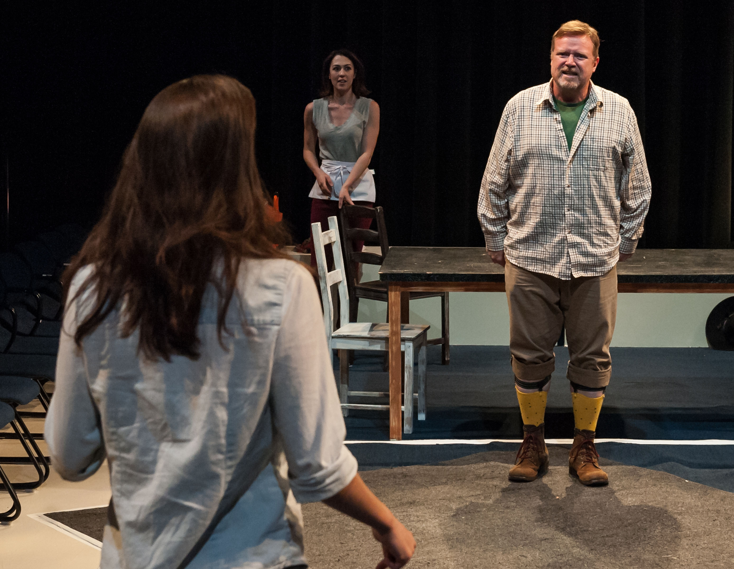 Susannah Millonzi (back), Kelley Curran,& Edmund Lewis in Bedlam's Twelfth Night. Photo: A.R. Sinclair Photography.