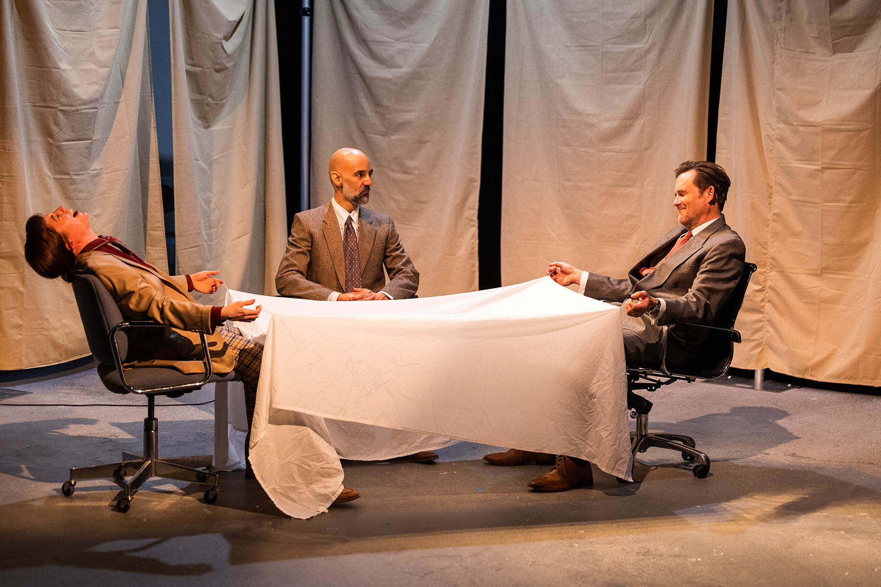 Kari Buckley, Nael Nacer, and Eric Tucker in Angels in America, Part 1: Millennium Approaches. Photo: Nile Scott Studios.Scott Studios.