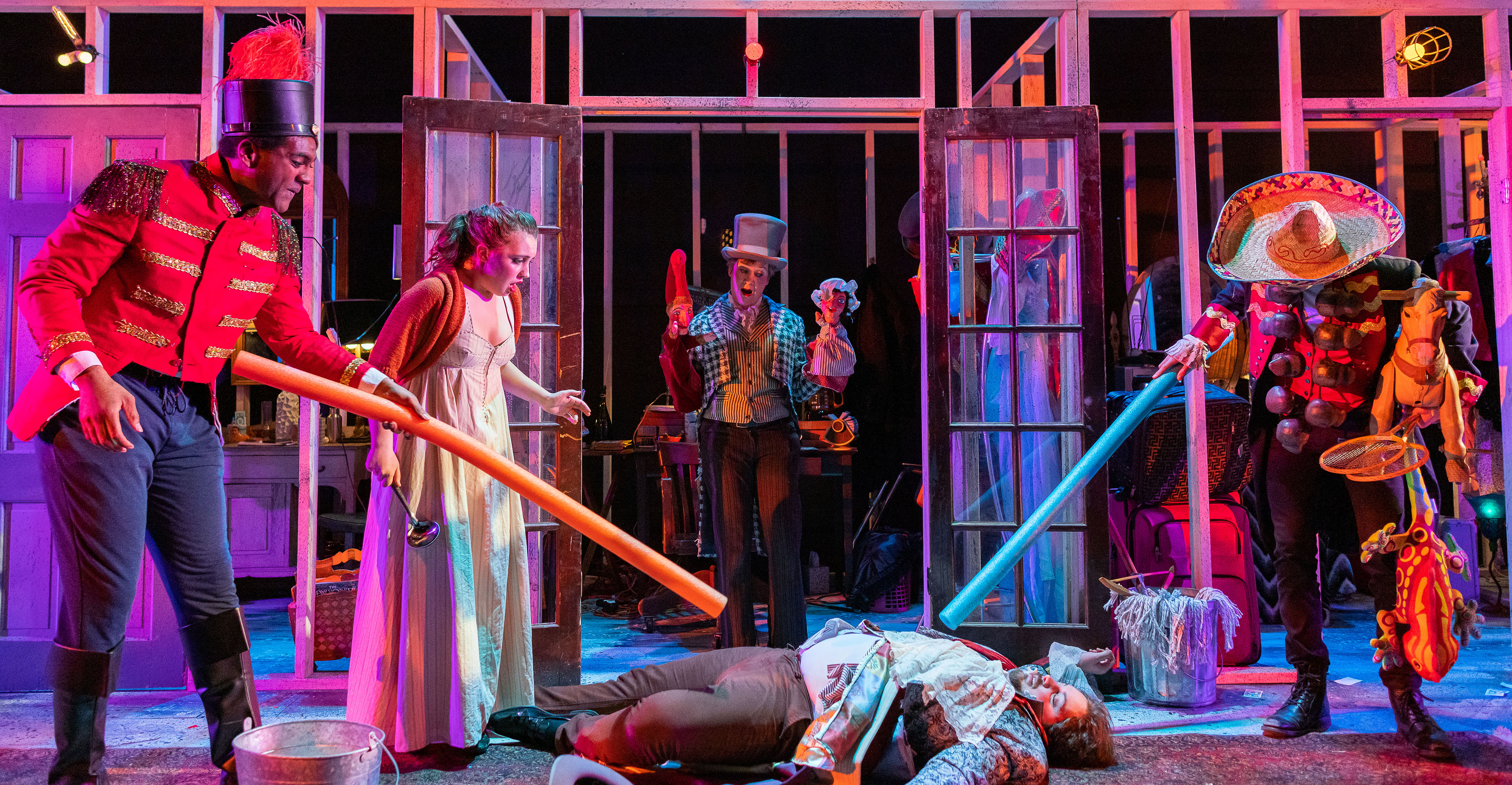 Stewart Evan Smith, Josephine Moshiri Elwood, Debra Wise, Paul Melendy, and Evan Turissini (lying on ground). Photo: Nile Scott Studios.