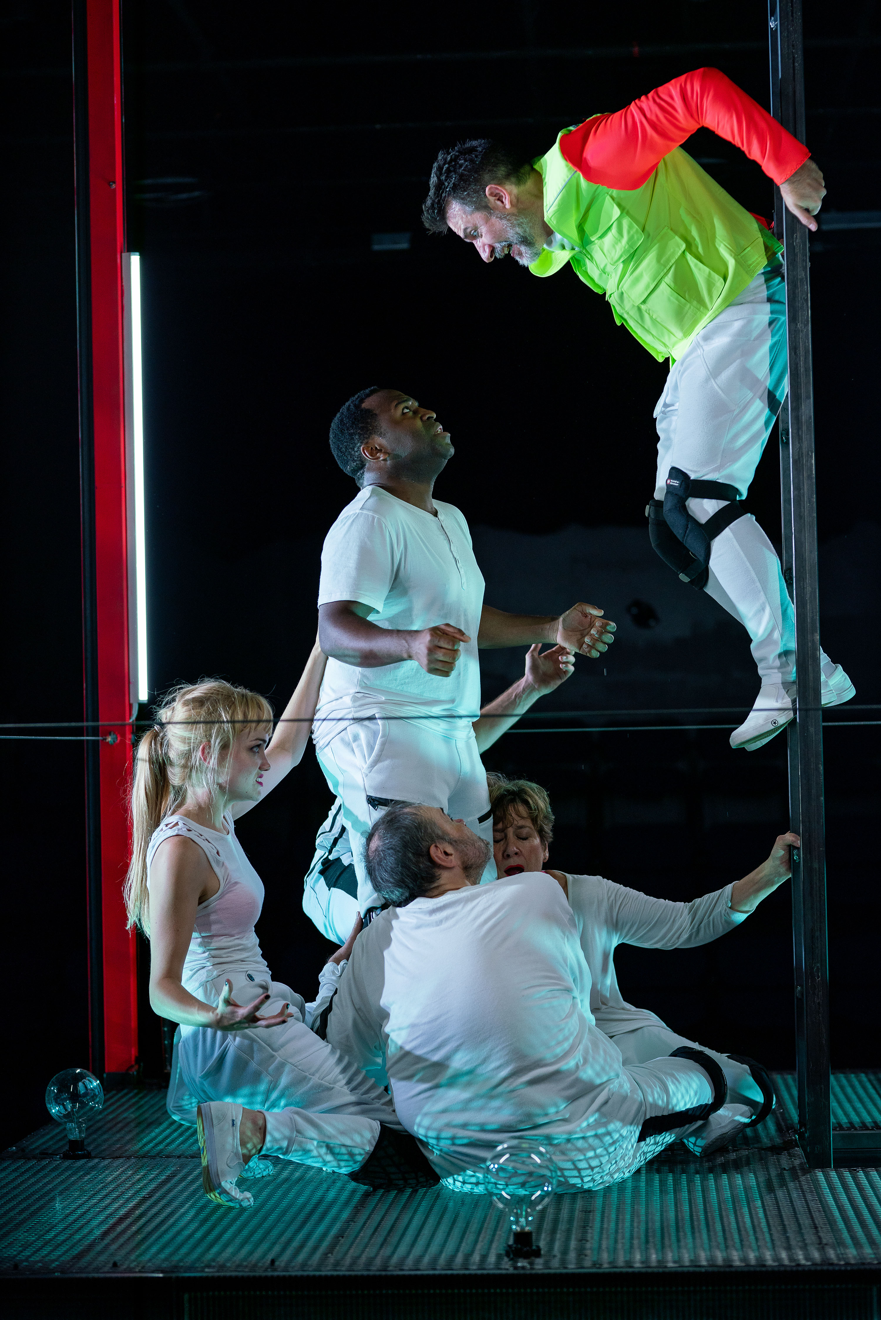 (Clockwise from left): Ashley Risteen,. Omar Robinson, John Kuntz, Debra Wise, and Remo Airaldi in FRANKENSTEIN. Photo: Nile Scott Studios.