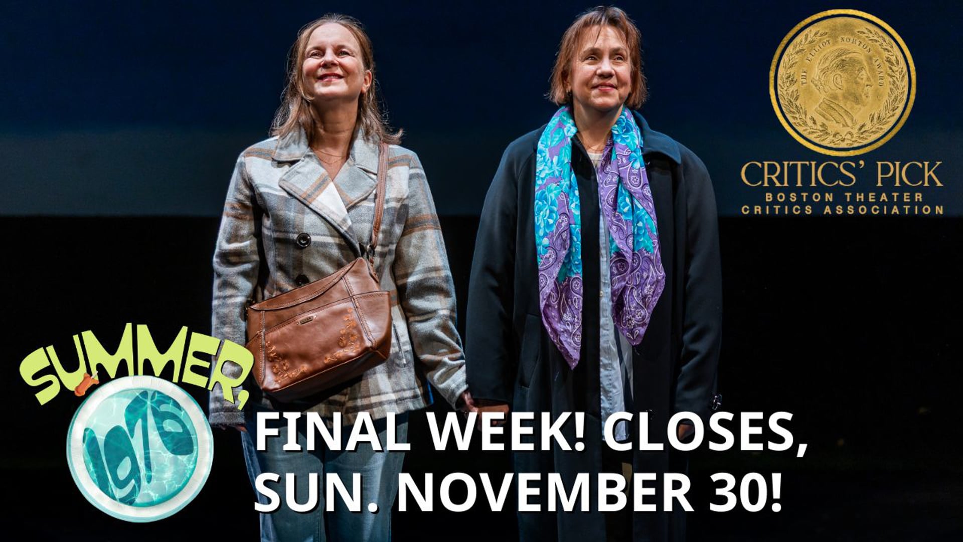 1976. An Ohio college town. The second wave of feminism is cresting. Two very different women are thrown together through a faculty babysitting co-op and an unlikely friendship forms between Diana, a fiercely iconoclastic artist, and Alice, a free-spirited yet naive young housewife. Summer, 1976 is written by Pulitzer winner David Auburn (Proof) with Paula Plum, recipient of the Elliot Norton Prize for Sustained Excellence making her CST directorial debut. She is joined by Elliot Norton Award-winning actors Lee Mikeska Gardner and Laura Latreille as Diana and Alice. In the course of 90 minutes, we are brought directly into their memories and the small moments that change the course of their lives in this funny and poignant play The New York Times praises as “sharply observant…subtly, insistently feminist.”